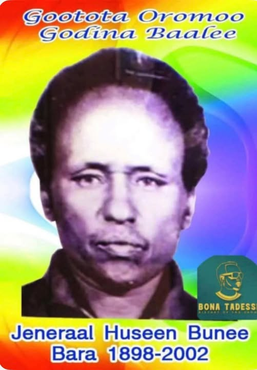 General Hussein Bunee was born in 1898 in Sawweyna, Baale Province. From his youth, he was known as an intelligent and courageous man. Because of these qualities, he rose through the ranks within Haile Selassie’s administration, eventually attaining a senior leadership position. However, during his service, he became deeply aware of the oppression the regime inflicted upon the Oromo people. This realization compelled him to join the struggle for freedom, famously declaring his commitment by selling nine cattle to purchase three rifles and begin his resistance.
