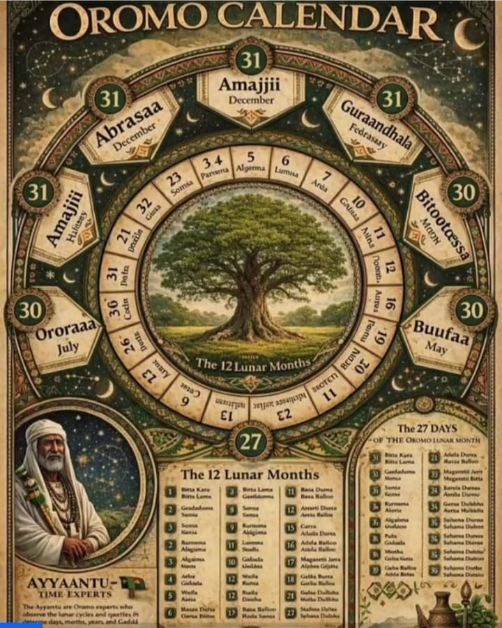 Unlike modern linear calendars, Dhahaa is cyclical, cosmological, and communal, governing not only agricultural seasons but also law, governance, ritual life, ethics, and intergenerational responsibility through the Gadaa system.