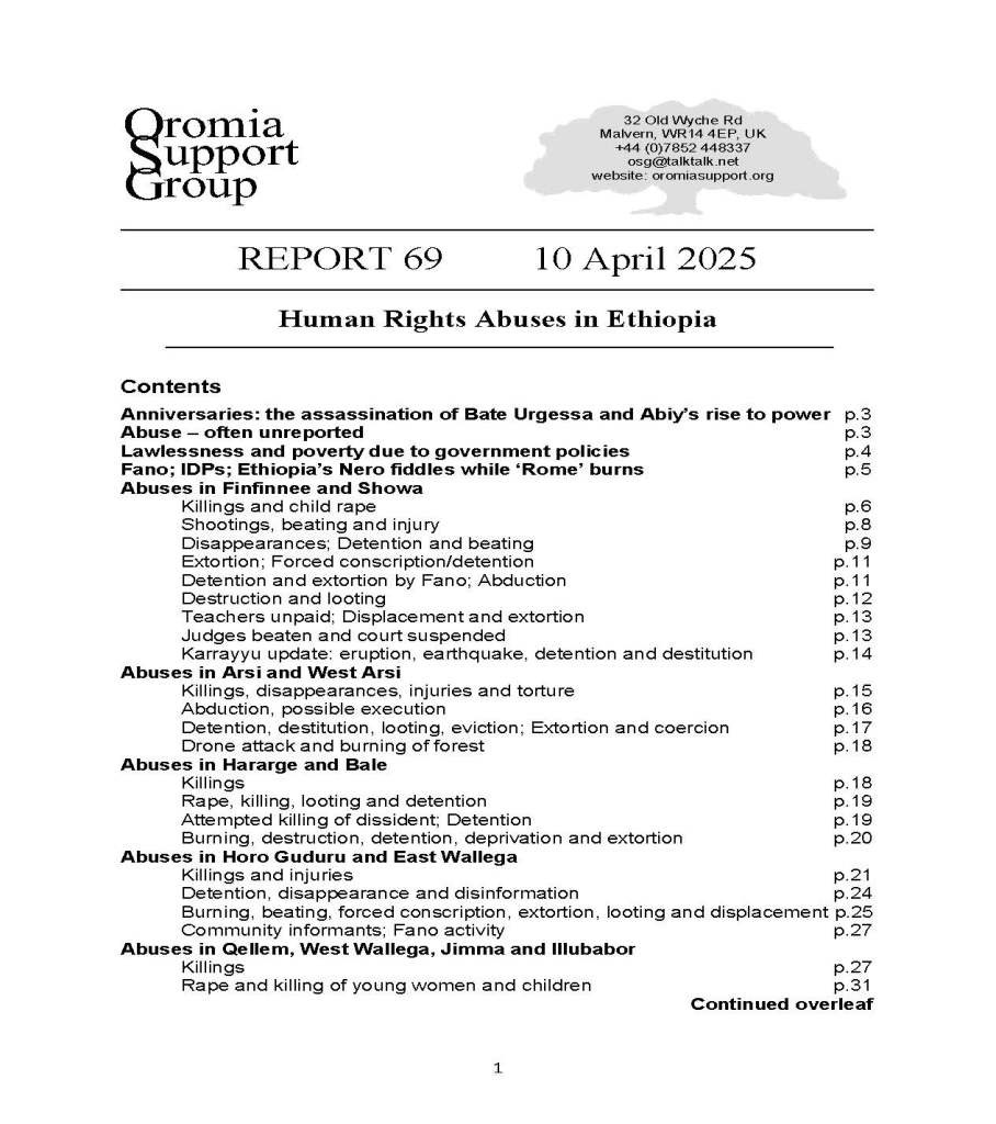 November 21, 2025 – The Oromia Support Group (OSG), an organization advocating for human rights, has released a damning 70-page report alleging systematic and widespread human rights violations across Ethiopia and the wider Horn of Africa.